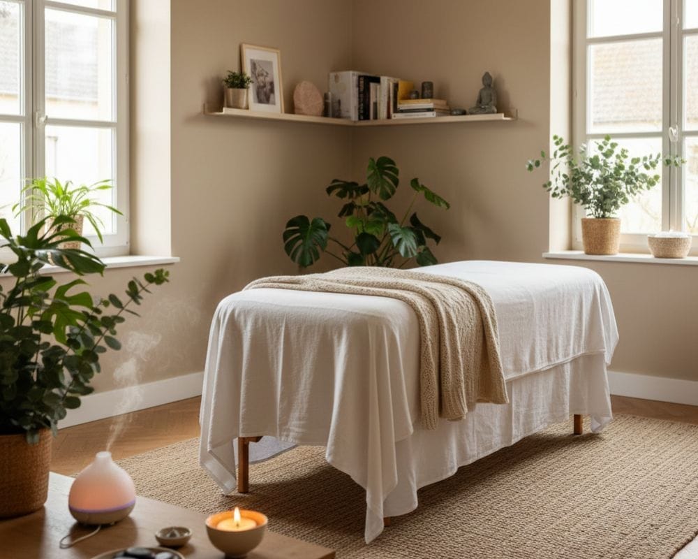N'ayez aucune inquiétude. J'apporte tout le matériel (table de massage, huiles, serviettes). Un espace de la taille d'un tapis de yoga suffit pour créer votre sanctuaire temporaire.